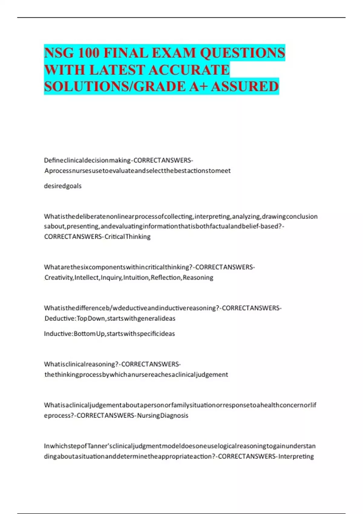 CORRECT ANSWERS- Critical Thinking