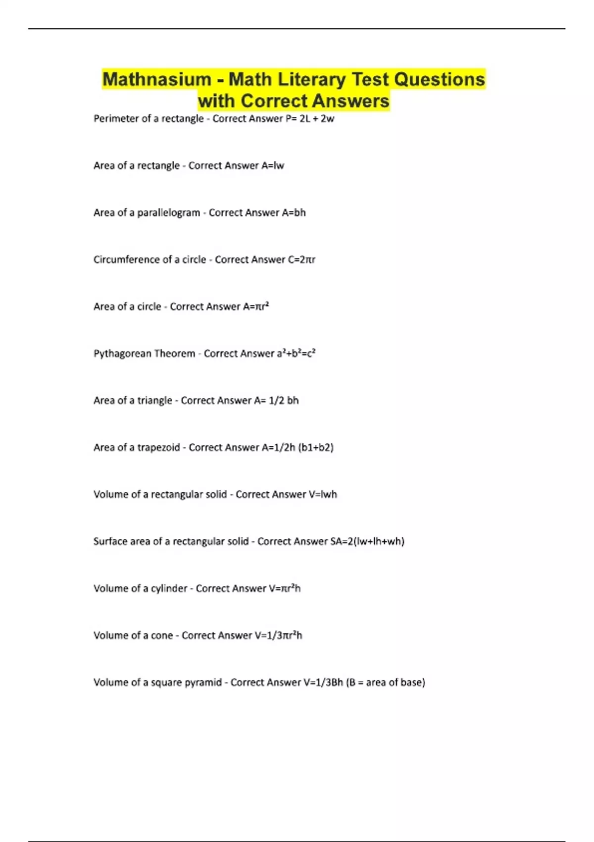 Mathnasium - Math Literary Test Questions with Correct Answers
