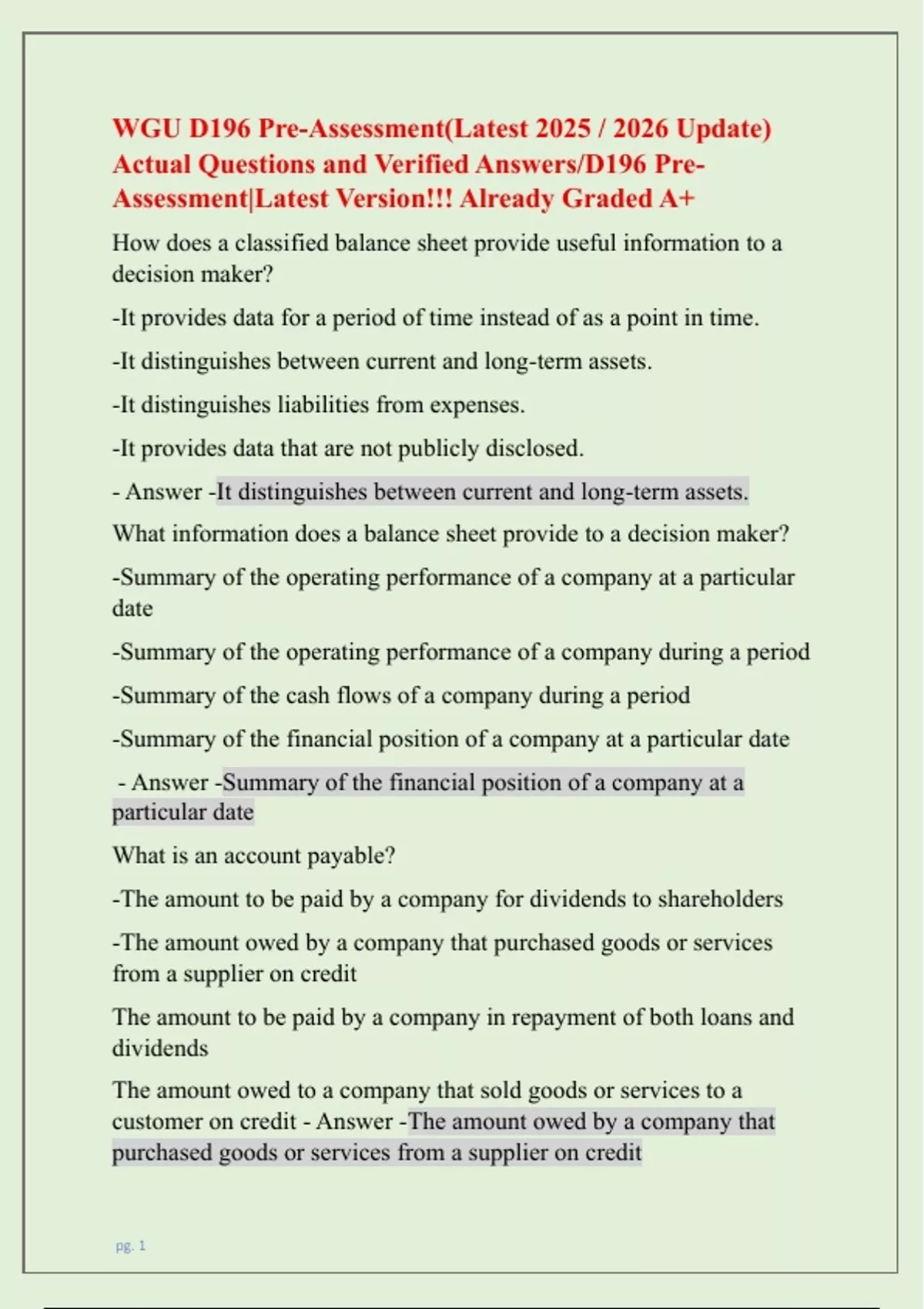 Actual Questions and Verified Answers/D196 Pre-