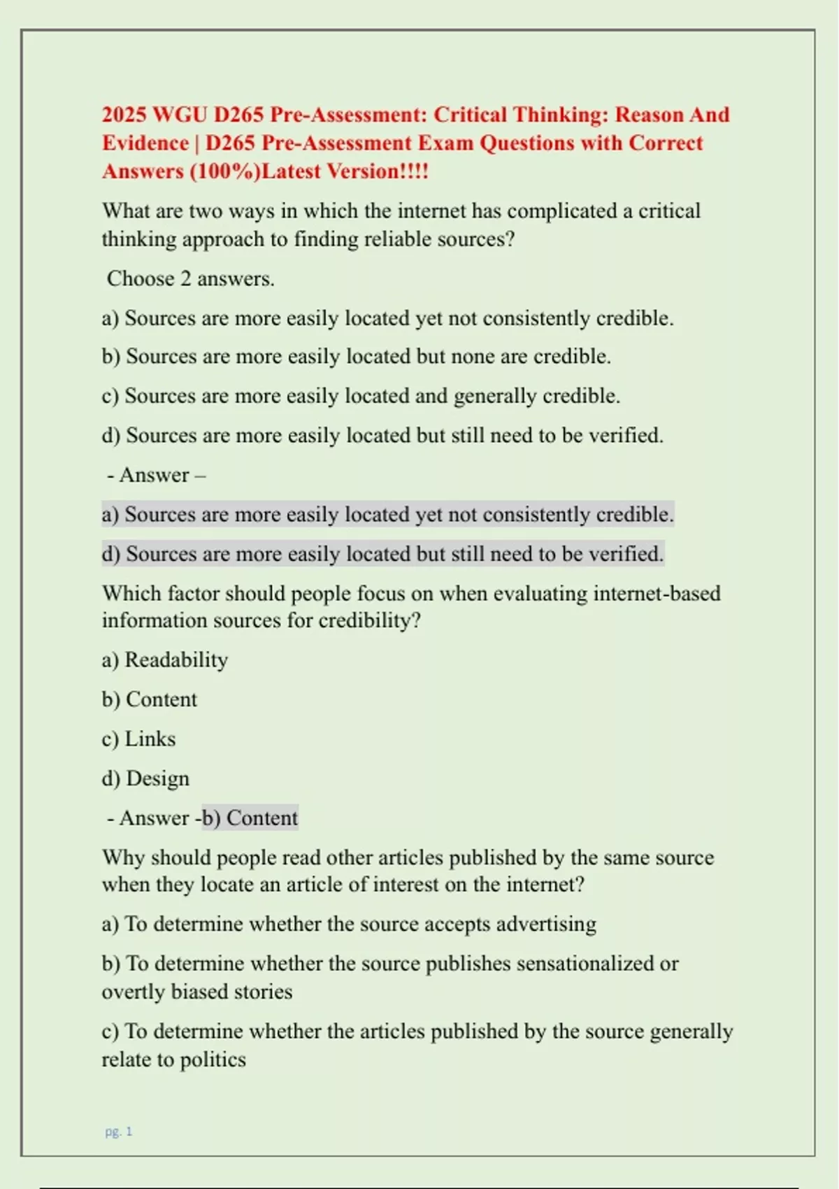 Evidence | D265 Pre-Assessment Exam Questions with Correct