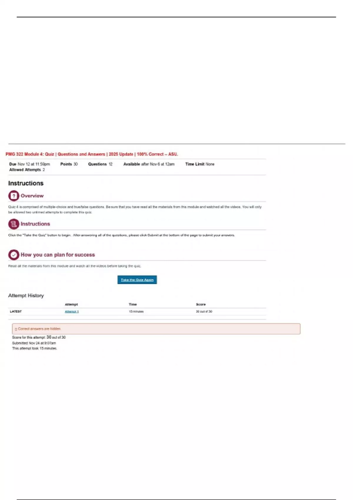 PMG 322 Module 4: Quiz | Questions and Answers | 2025 Update | 100% Correct – ASU.