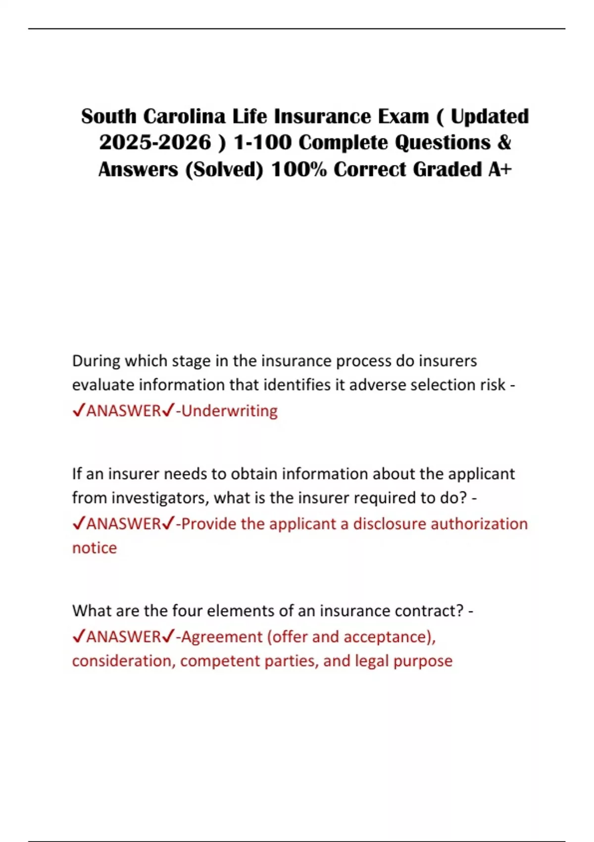 ✔ANASWER✔-Underwriting