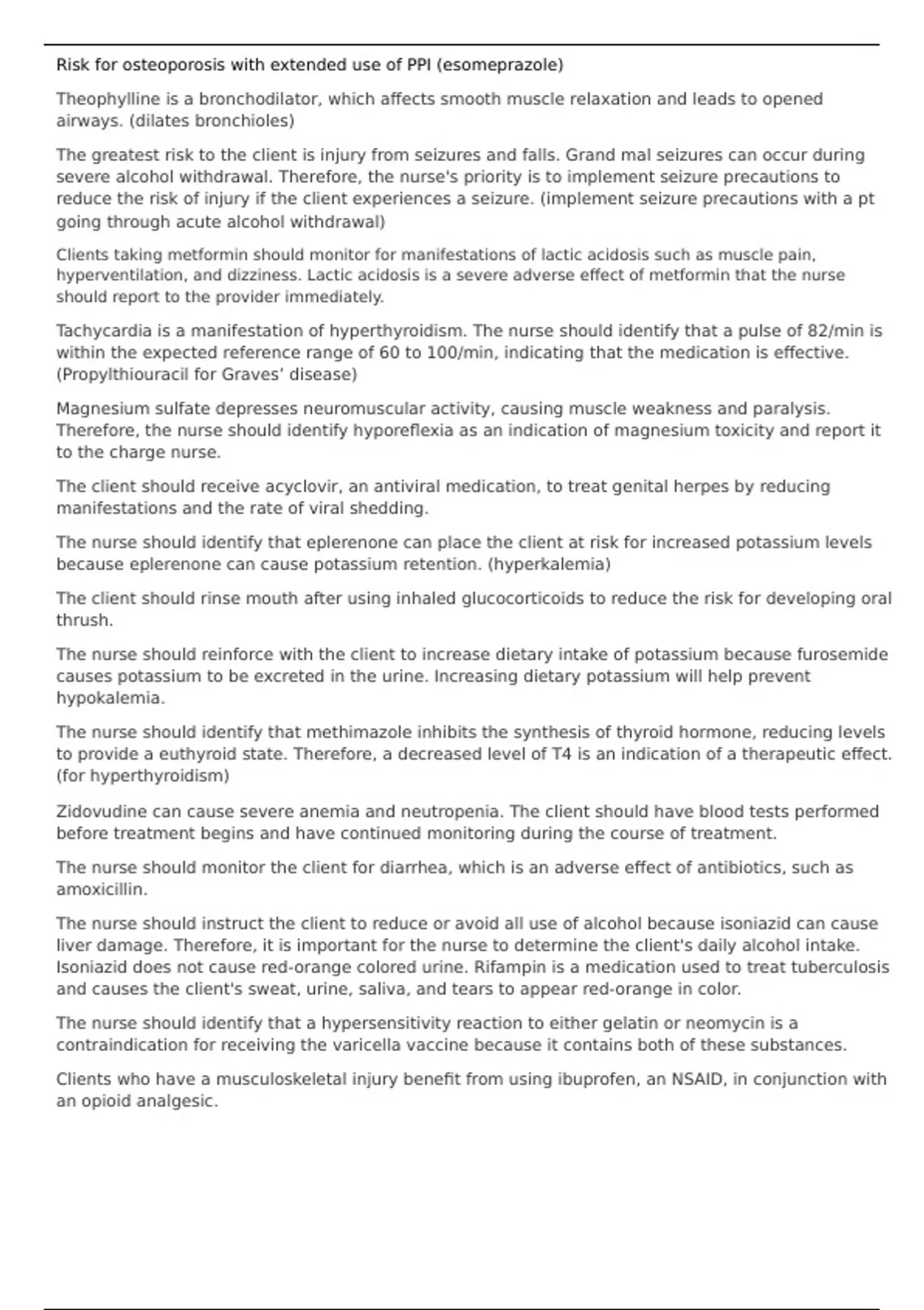 The nurse should identify that eplerenone can place the client at risk for increased potassium levels