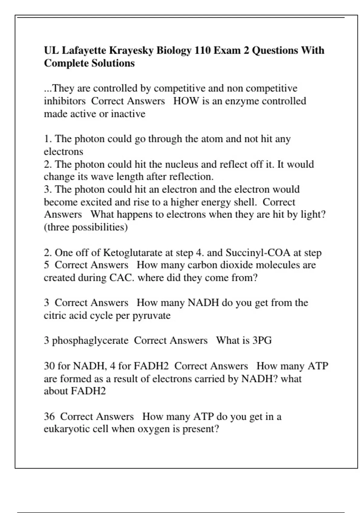 UL Lafayette Krayesky Biology 110 Exam 2 Questions With Complete Solutions