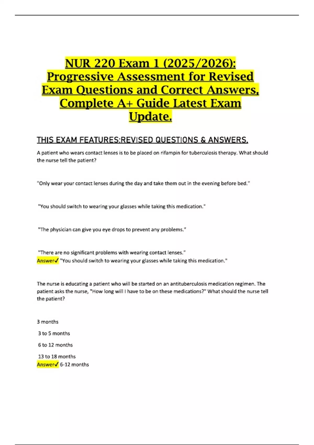 NUR 220 Exam 1 (2025/2026): Progressive Assessment for Revised Exam Questions and Correct Answers, Complete A+ Guide Latest Exam Update.