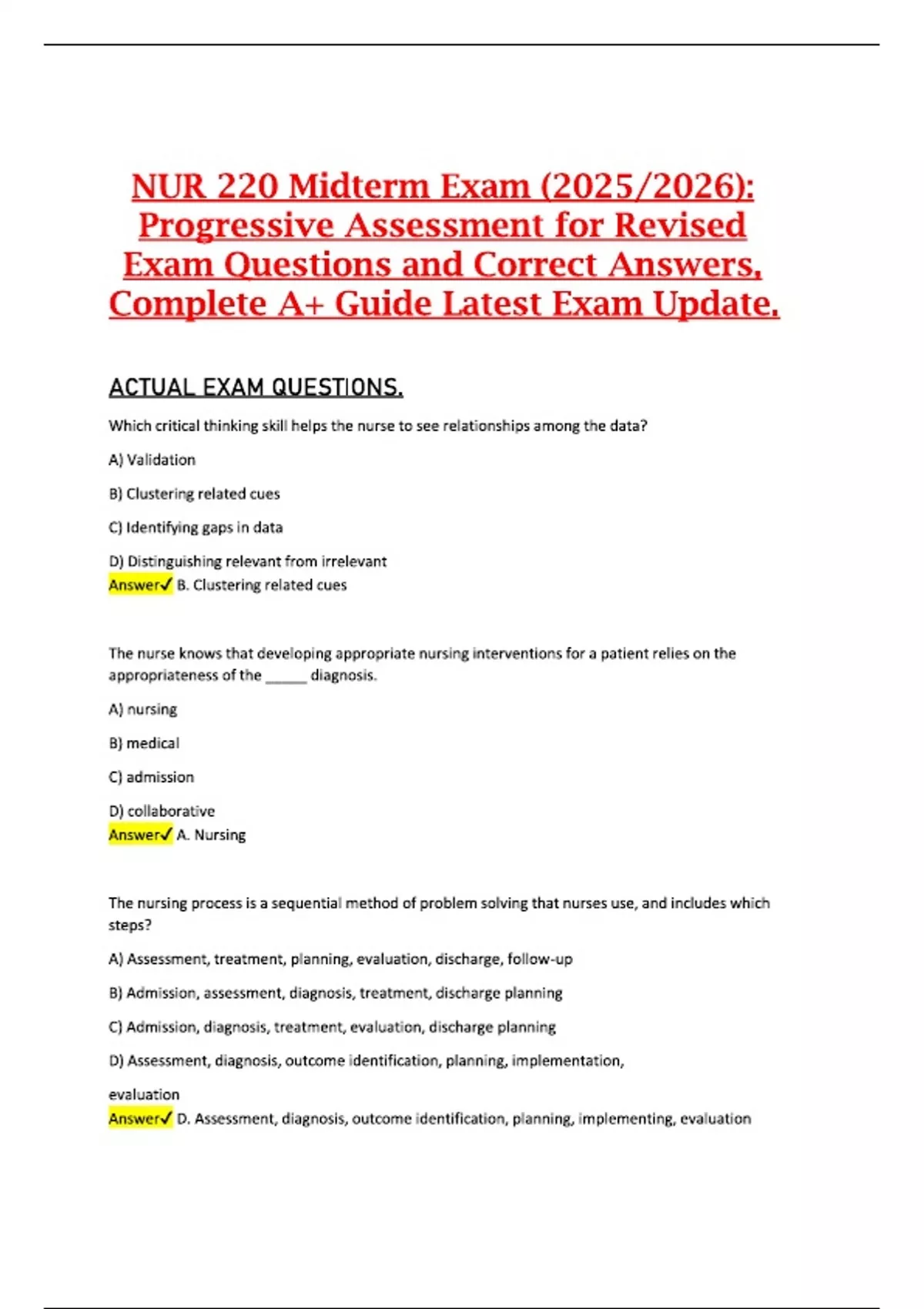NUR 220 Midterm Exam (2025/2026): Progressive Assessment for Revised Exam Questions and Correct Answers, Complete A+ Guide Latest Exam Update. NUR 220 Midterm Exam (2025/2026): Progressive Assessment for Revised Exam Questions and Correct Answers, Complete A+ Guide Latest Exam Update. NUR 220 Midterm Exam (2025/2026): Progressive Assessment for Revised Exam Questions and Correct Answers, Complete A+ Guide Latest Exam Update.