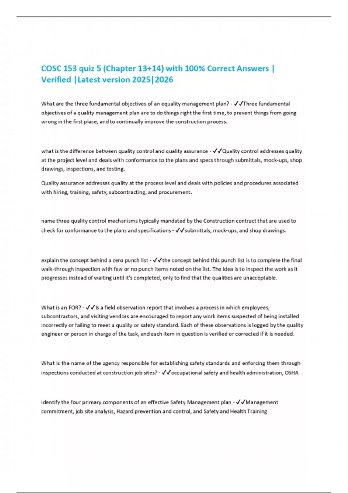 COSC 153 quiz 5 (Chapter 13+14) with 100% Correct Answers | Verified |Latest version 2025|2026