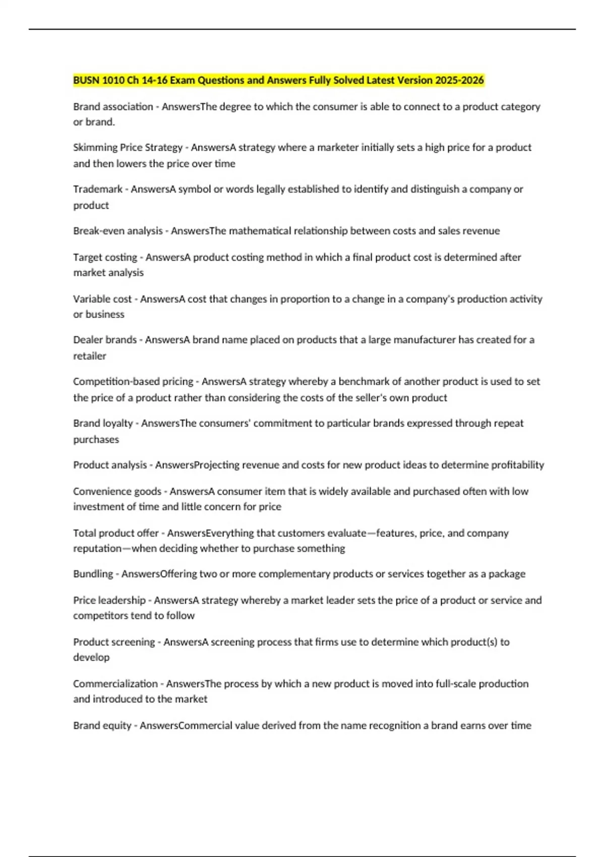 Skimming Price Strategy - AnswersA strategy where a marketer initially sets a high price for a product