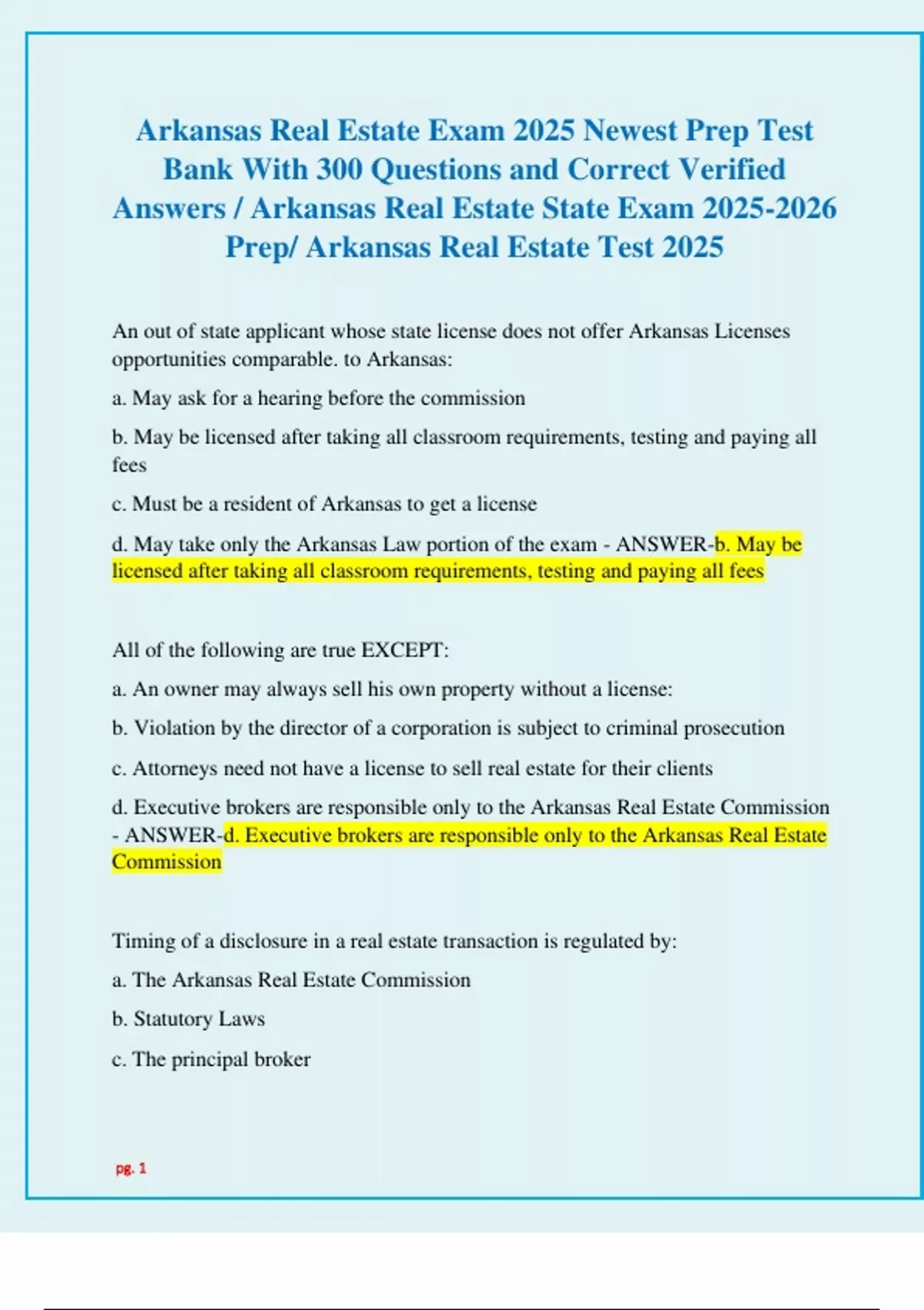 d. Executive brokers are responsible only to the Arkansas Real Estate Commission