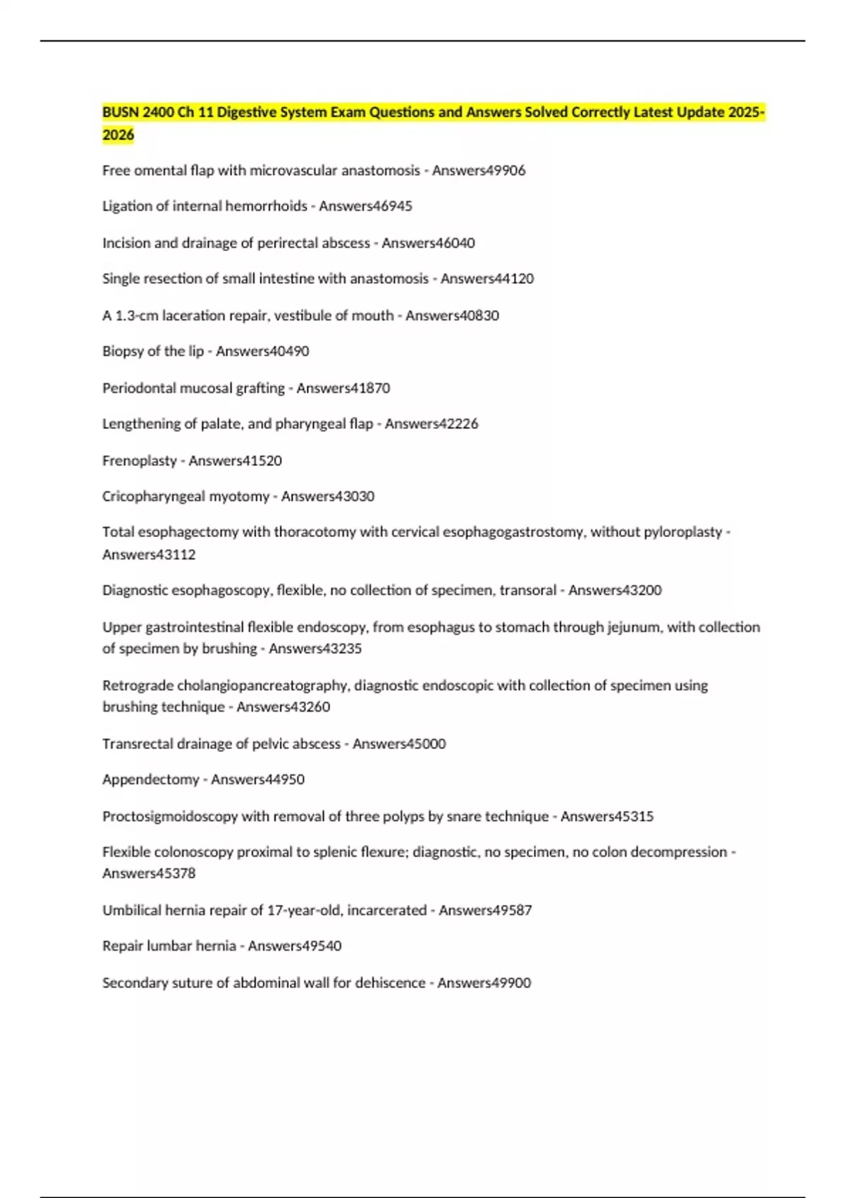 Appendectomy - Answers44950