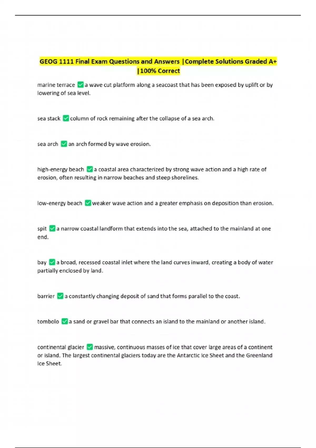 GEOG 1111 Final Exam Questions and Answers |Complete Solutions Graded A+ |100% Correct
