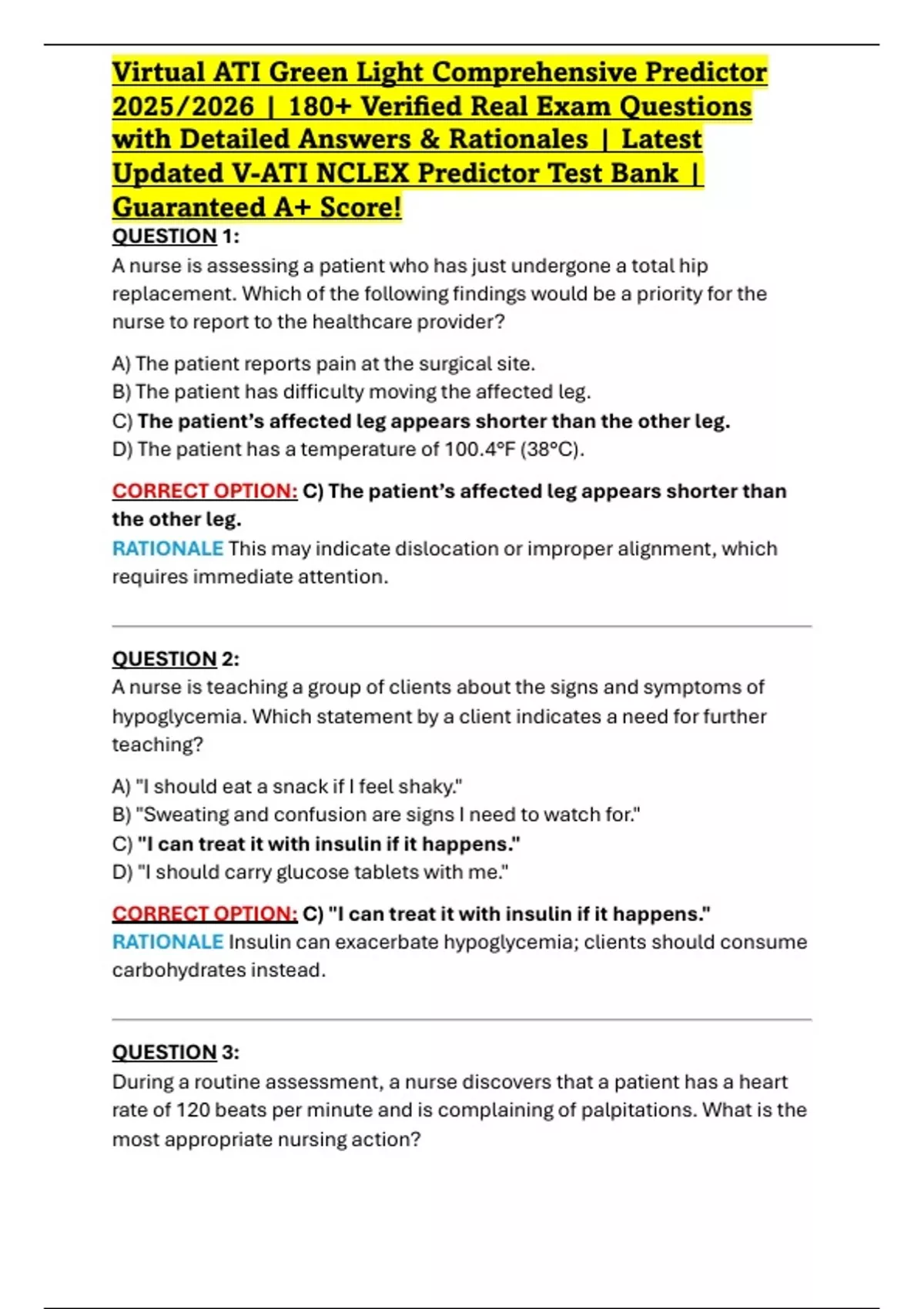 with Detailed Answers & Rationales | Latest