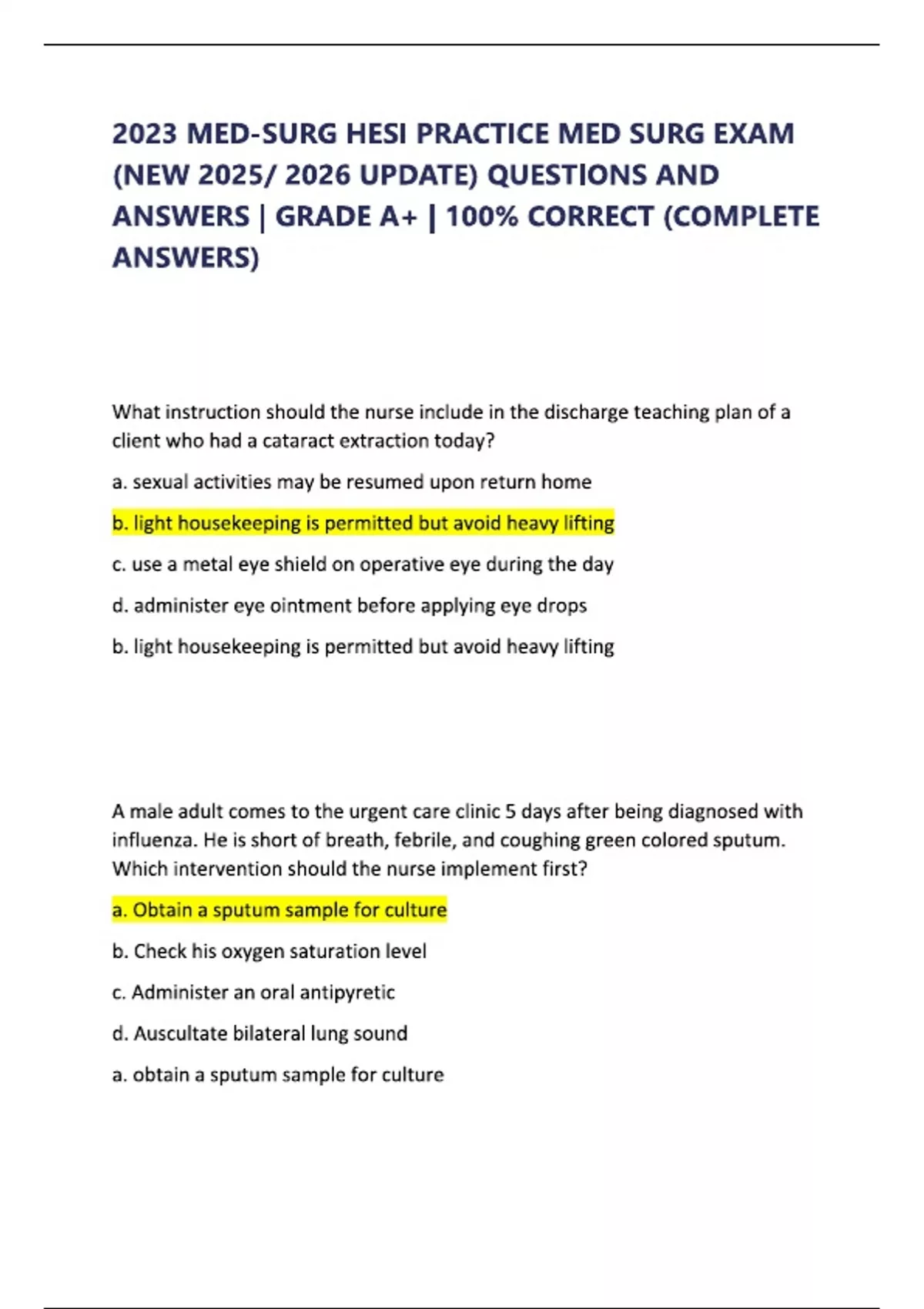 2023 MED-SURG HESI PRACTICE MED SURG EXAM (NEW UPDATE) QUESTIONS AND ANSWERS