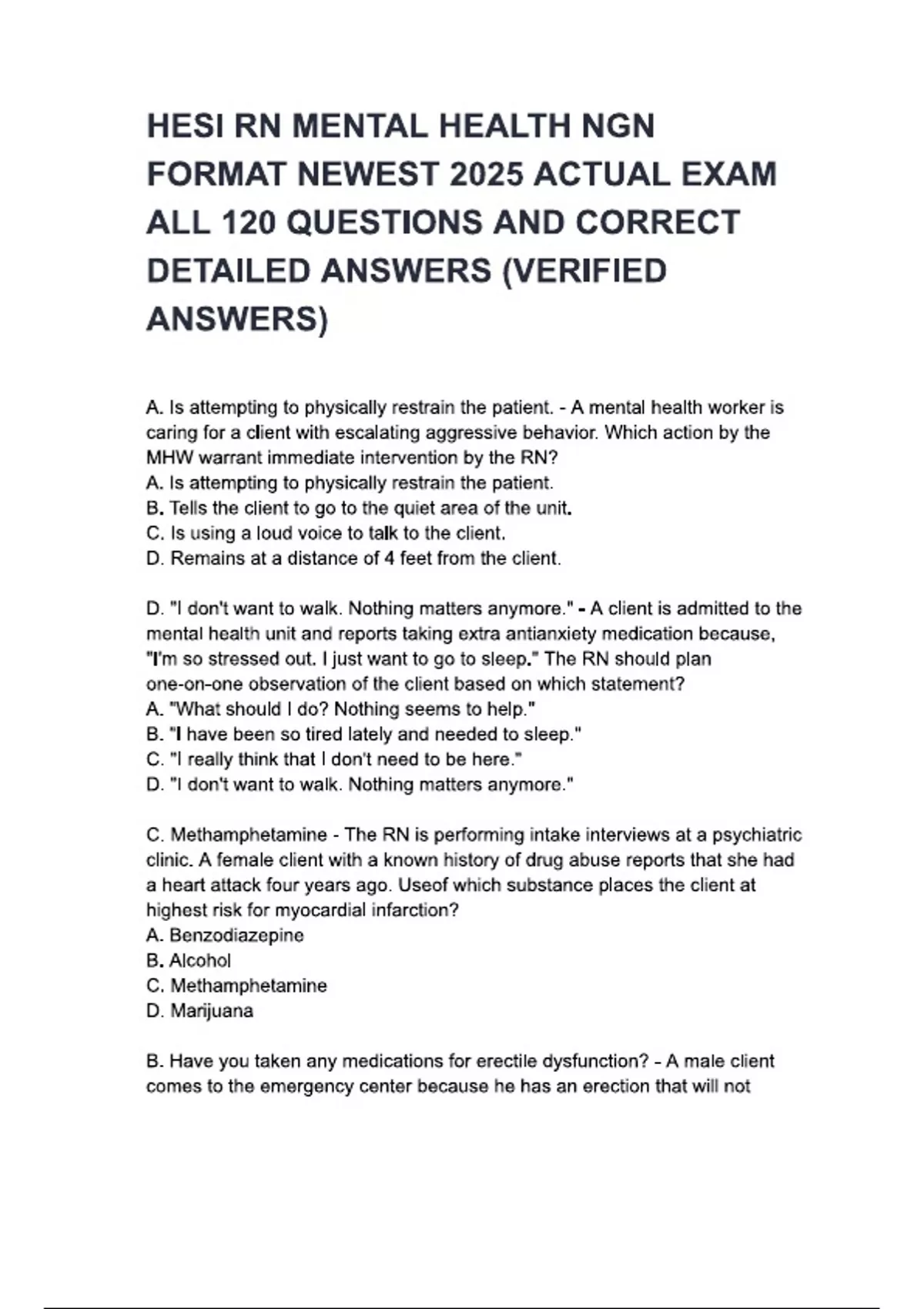 HESI RN MENTAL HEALTH NGN FORMAT NEWEST 2025 ACTUAL EXAM ALL 120 QUESTIONS AND ANSWERS