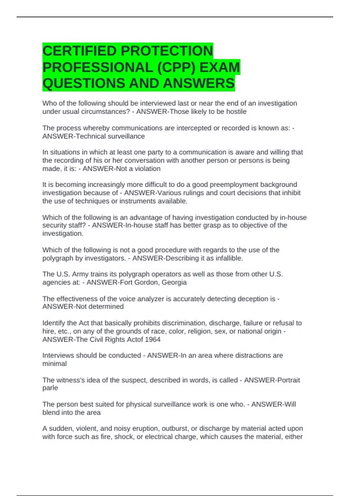CERTIFIED PROTECTION PROFESSIONAL (CPP) EXAM QUESTIONS AND ANSWERS