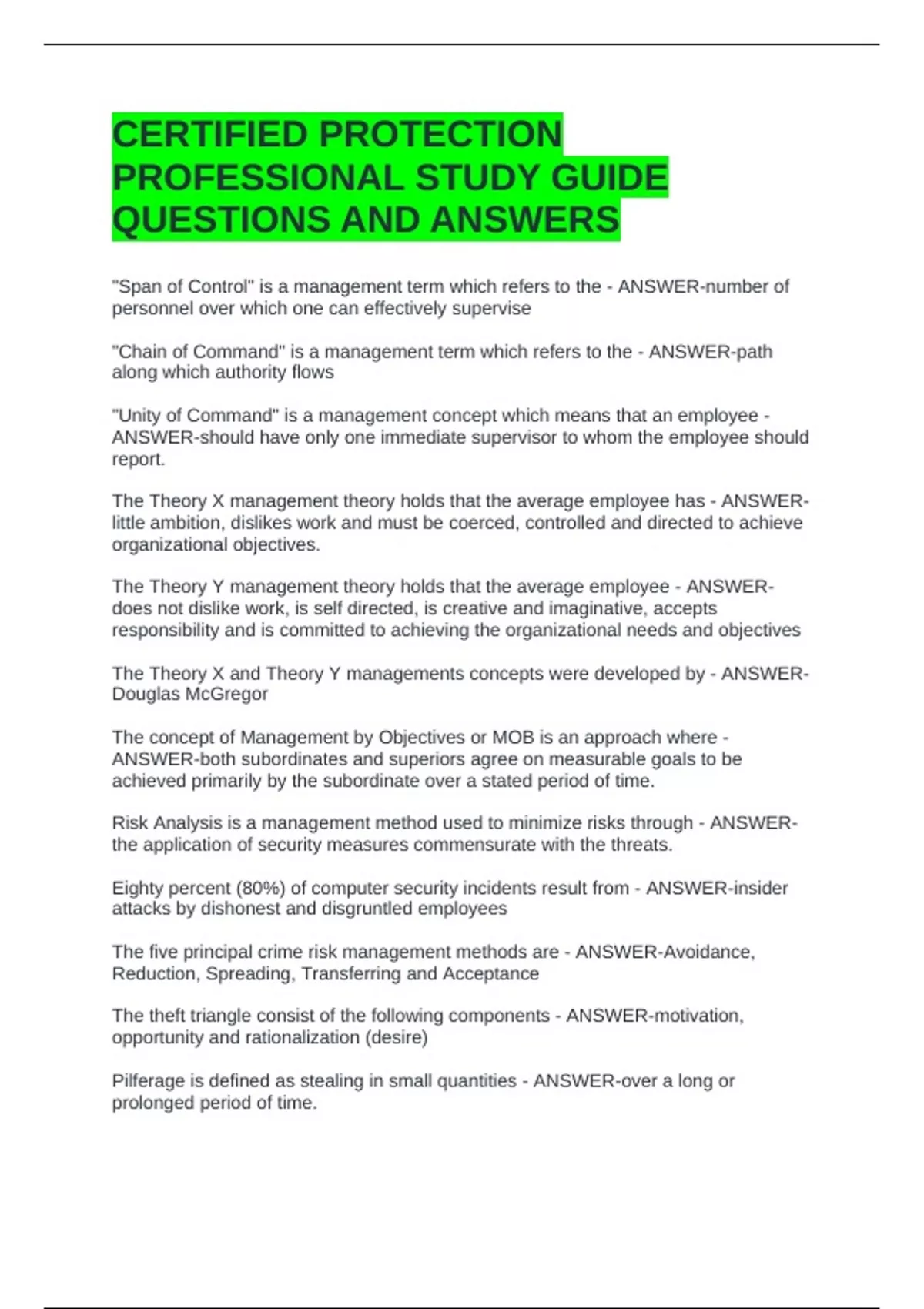CERTIFIED PROTECTION PROFESSIONAL STUDY GUIDE QUESTIONS AND ANSWERS