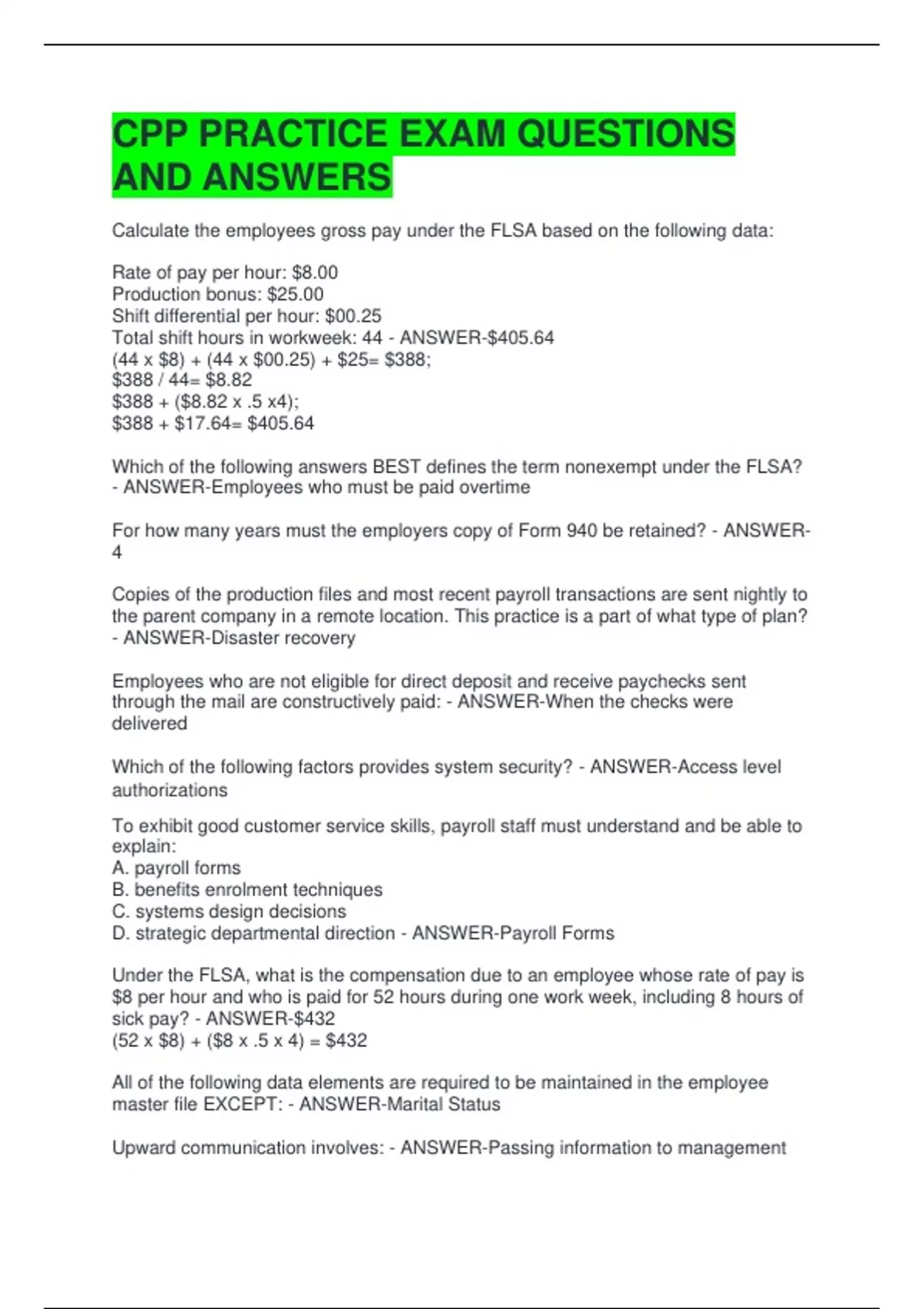 CPP PRACTICE EXAM QUESTIONS AND ANSWERS