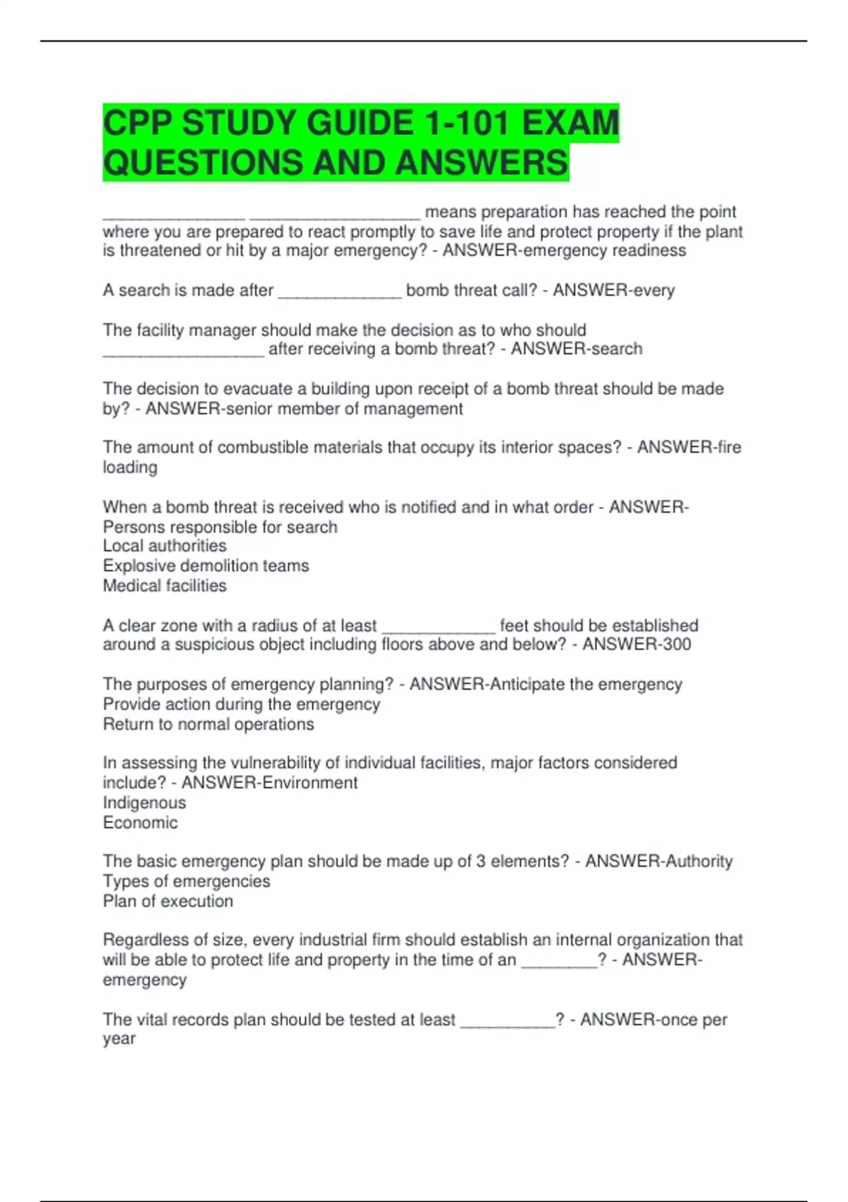 CPP STUDY GUIDE 1-101 EXAM QUESTIONS AND ANSWERS