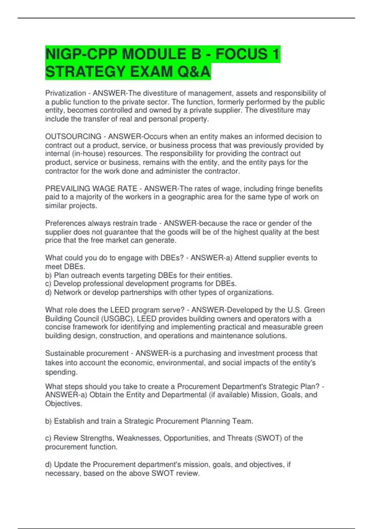 NIGP-CPP MODULE B - FOCUS 1 STRATEGY EXAM Q&A
