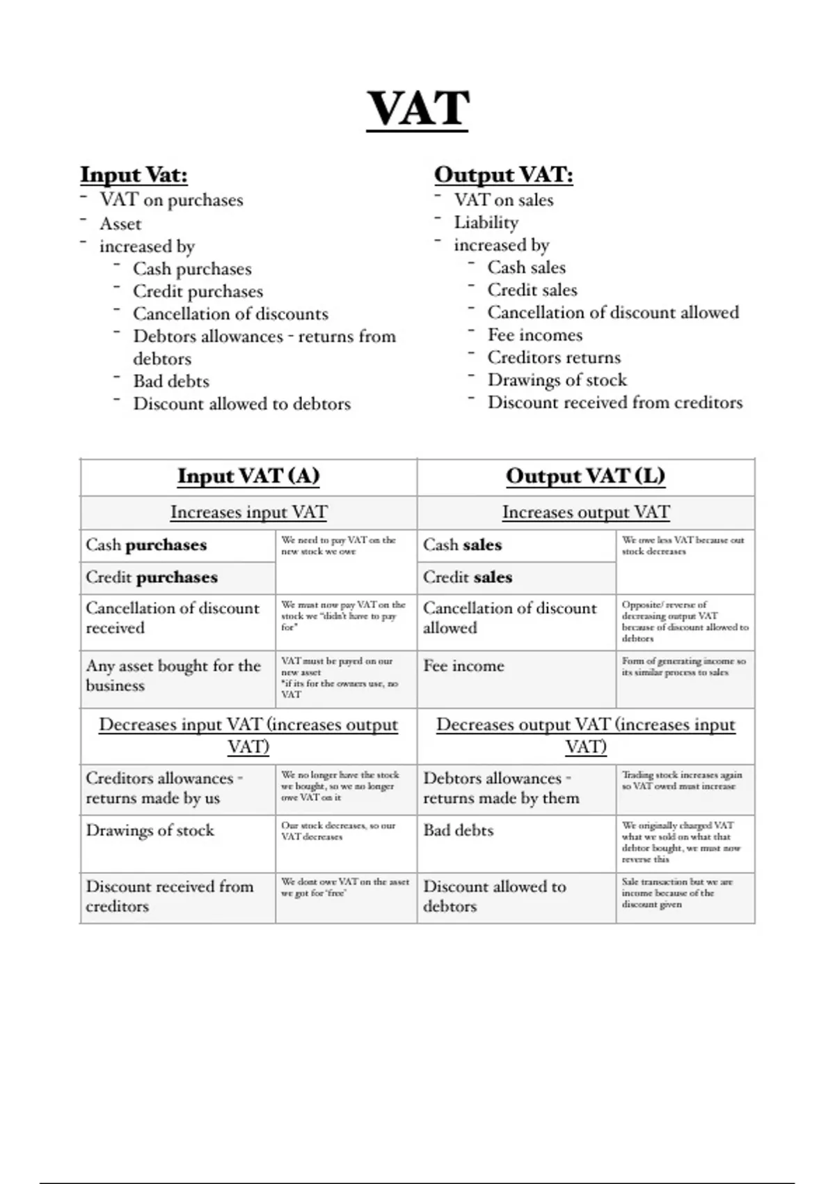 Decreases input VAT (increases output Decreases output VAT (increases input