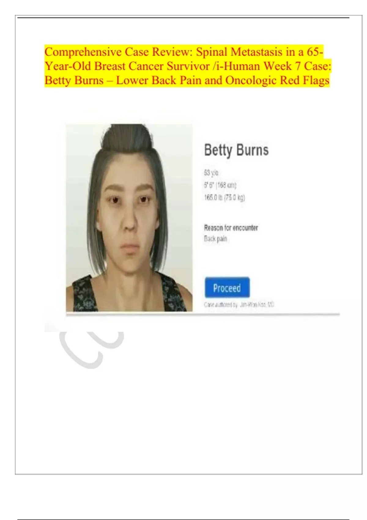 Comprehensive Case Review: Spinal Metastasis in a 65 Year-Old Breast Cancer Survivor /i-Human Week 7 Case: Betty Burns – Lower Back Pain and Oncologic Red Flags