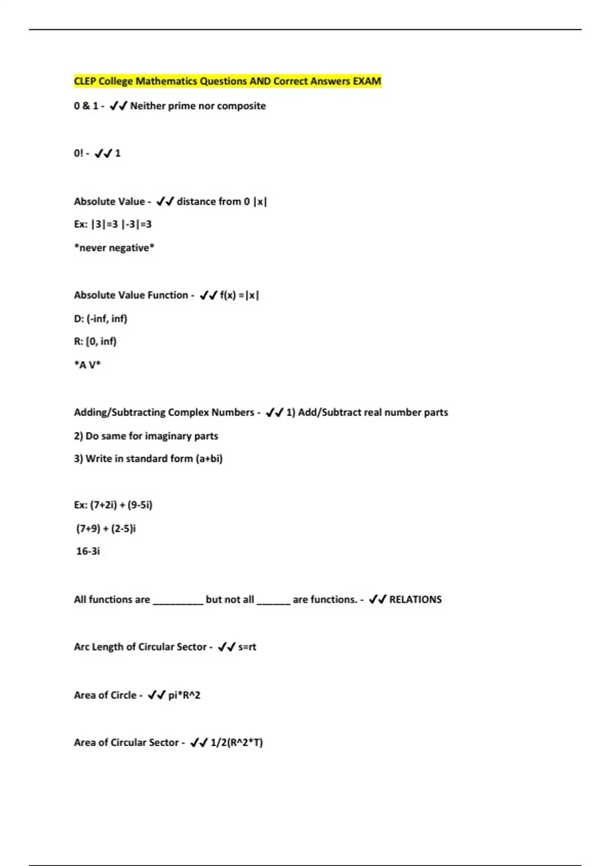 CLEP College Mathematics Questions AND Correct Answers EXAM