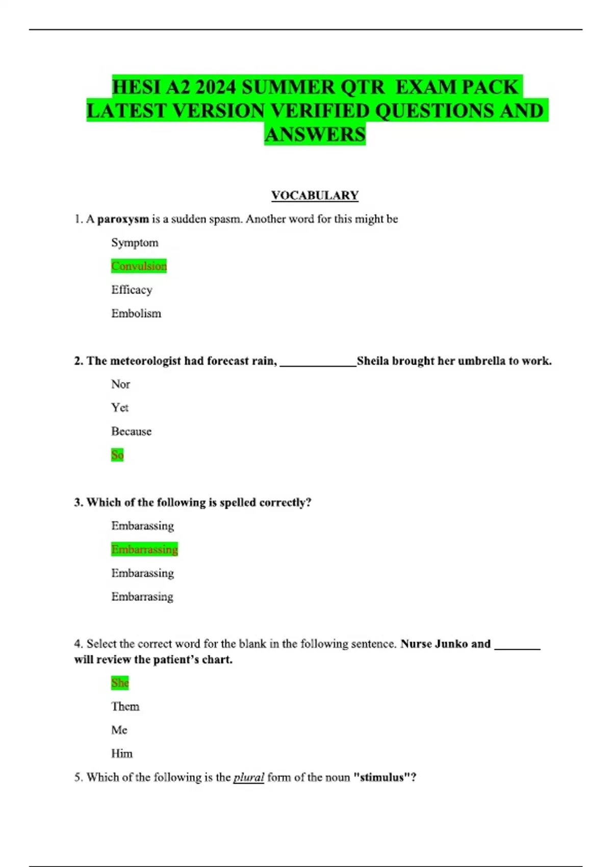 HESI A2 2024 SUMMER QTR EXAM PACK LATEST VERSION VERIFIED QUESTIONS AND ANSWERS