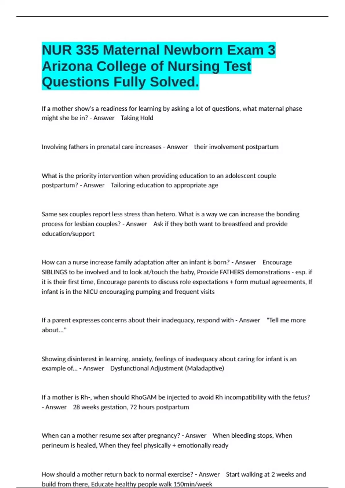 How should a mother return back to normal exercise? - Answer Start walking at 2 weeks and