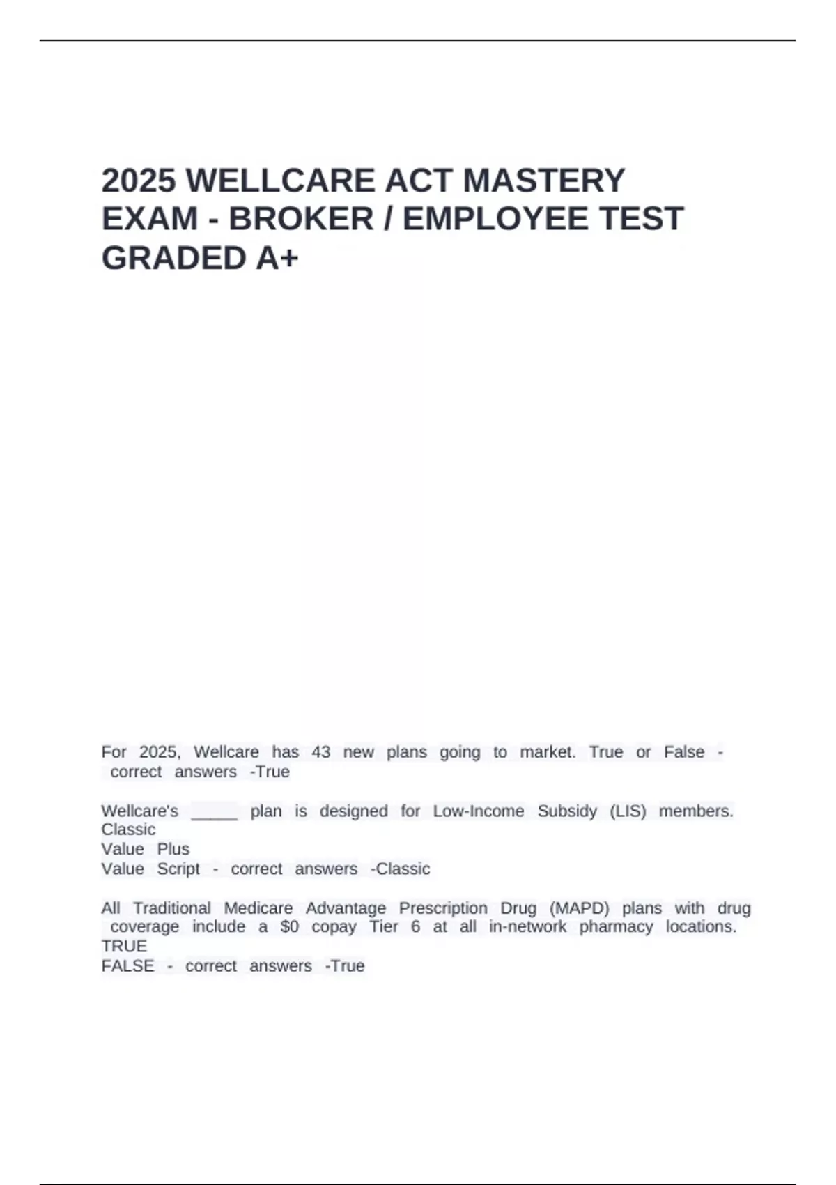 2025 WELLCARE ACT MASTERY
