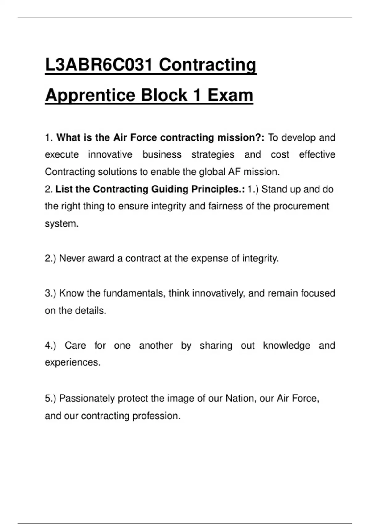 L3ABR6C031 Contracting Apprentice Block 1 Exam Questions and Answers 2025