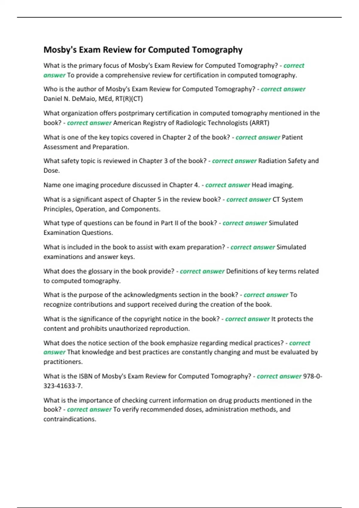 What is the ISBN of Mosby's Exam Review for Computed Tomography? - correct answer 978-0-