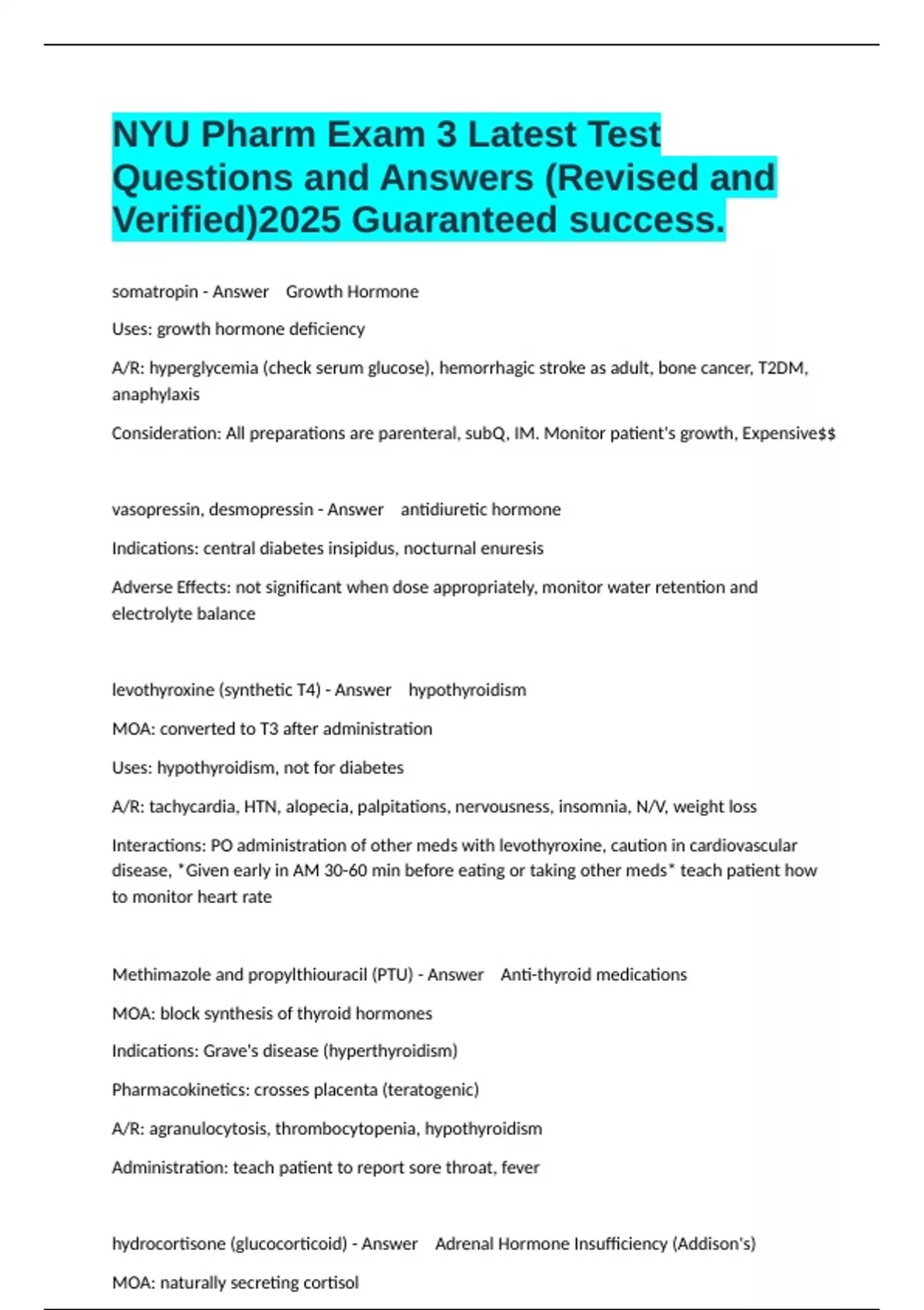 levothyroxine (synthetic T4) - Answer hypothyroidism