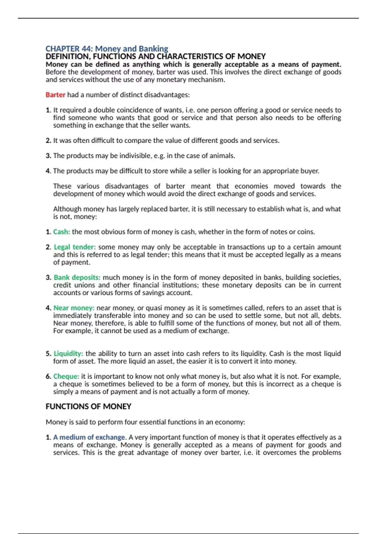 this document includes an amazing explanation of chapter 44 [Money and Banking] alone with real life examples and well clear and easy to understand diagrams