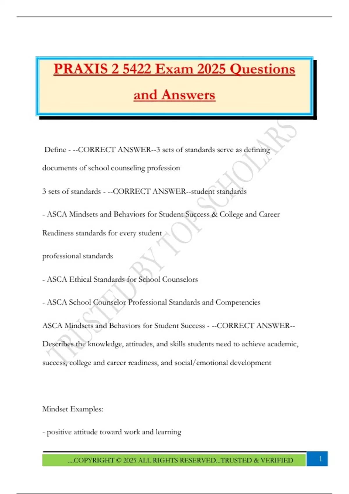 ASCA Mindsets and Behaviors for Student Success - --CORRECT ANSWER--
