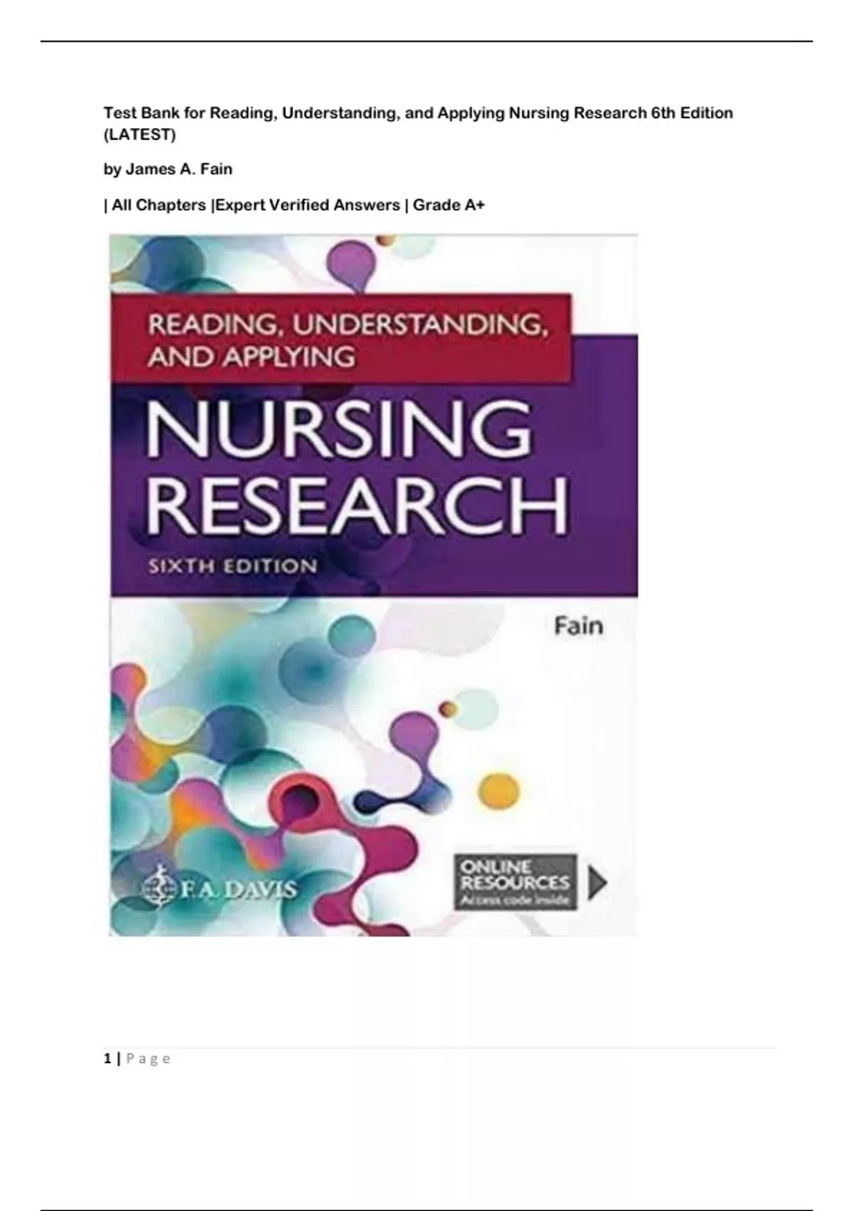 Test Bank for Reading, Understanding, and Applying Nursing Research 6th Edition