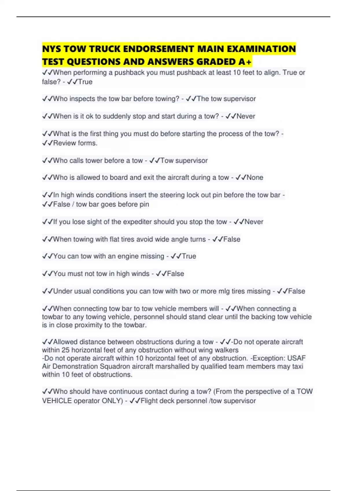 ✔✔Who inspects the tow bar before towing? - ✔✔The tow supervisor