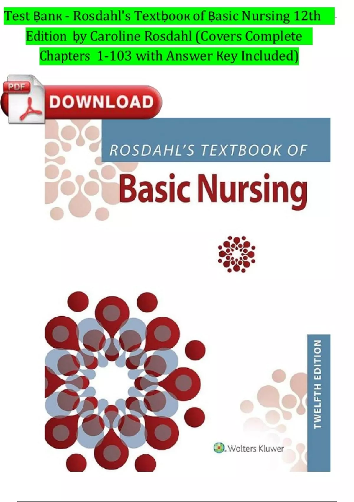 TEST BANK For Rosdahl's Textbook of Basic Nursing, 12th Edition by Caroline Rosdahl Chapters 1 - 103, Complete