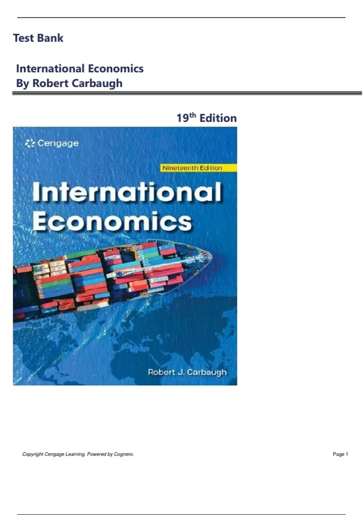 International Economics 19th Edition By Robert Carbaugh Copyright 2026