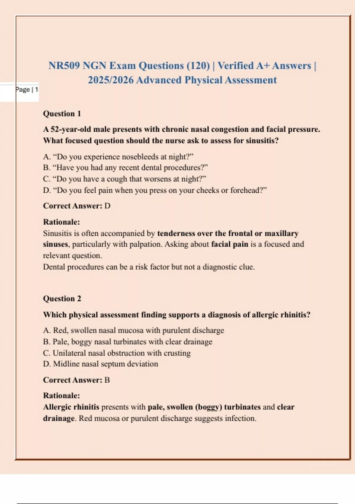 NR509 NGN Questions 120 | A+ Verified | Guaranteed Pass | Advanced Physical Assessment 2025/2026