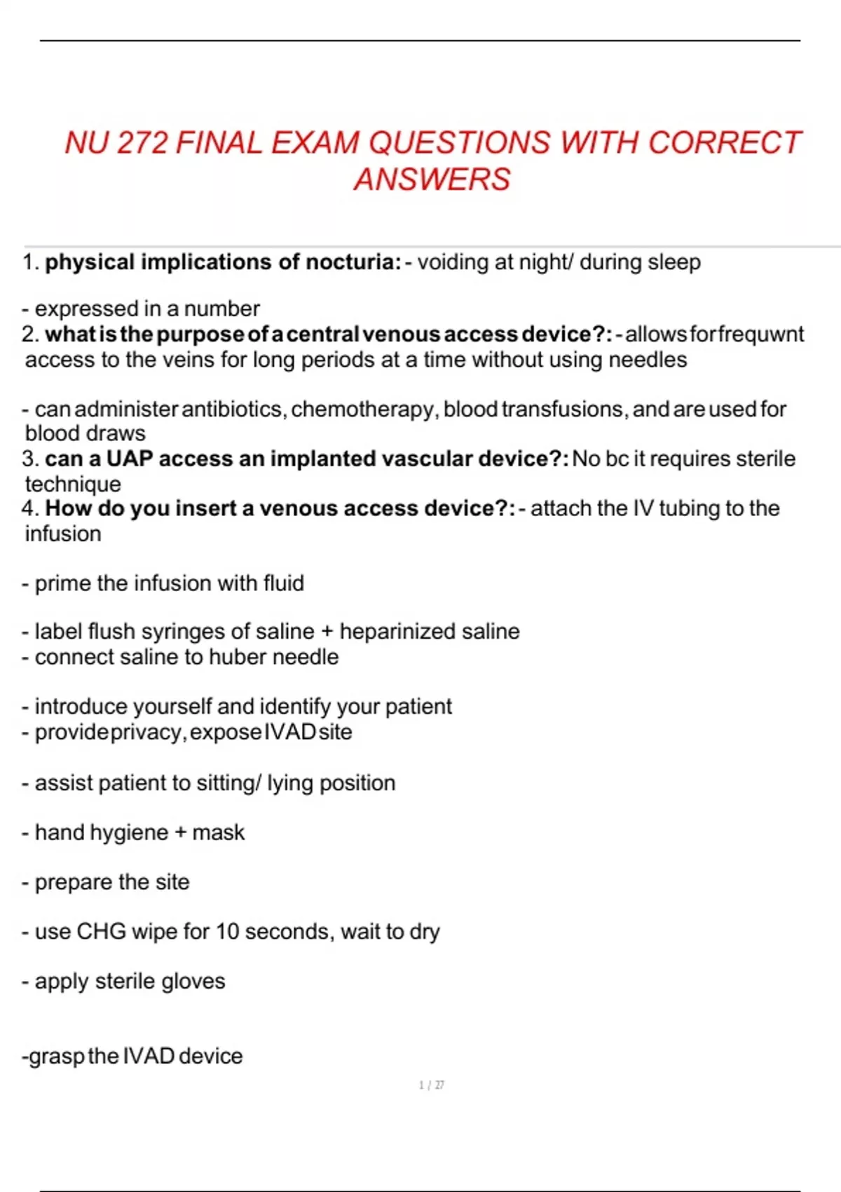 NU 272 FINAL EXAM QUESTIONS WITH CORRECT