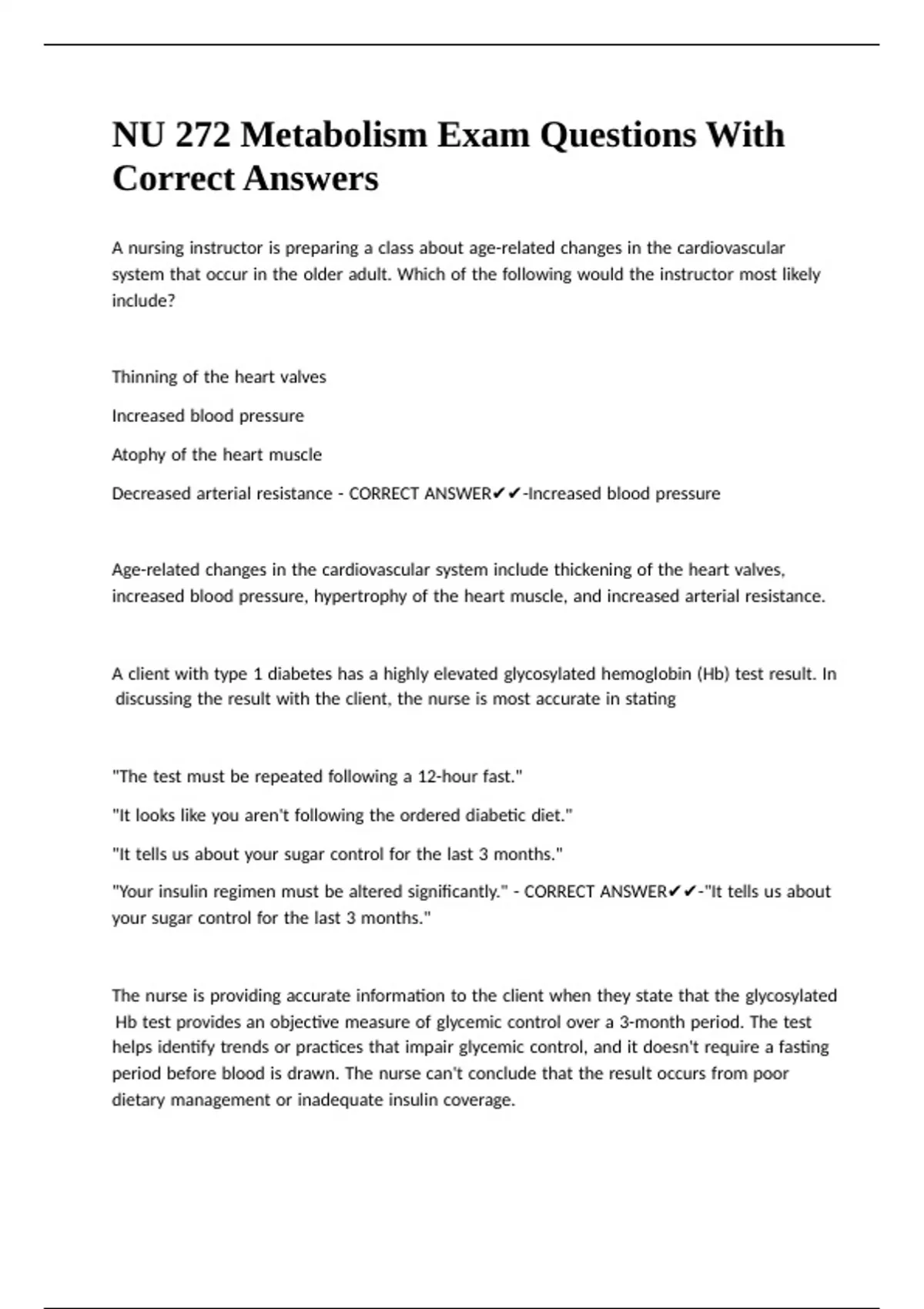NU 272 Metabolism Exam Questions With Correct Answers.