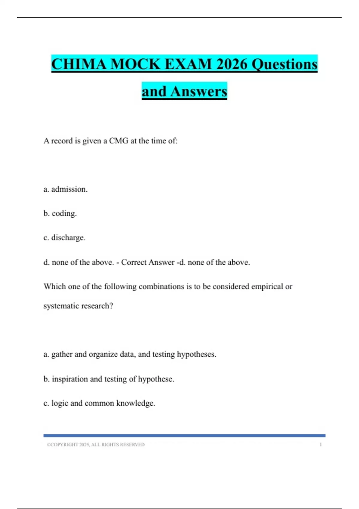 CHIMA MOCK EXAM 2026 Questions