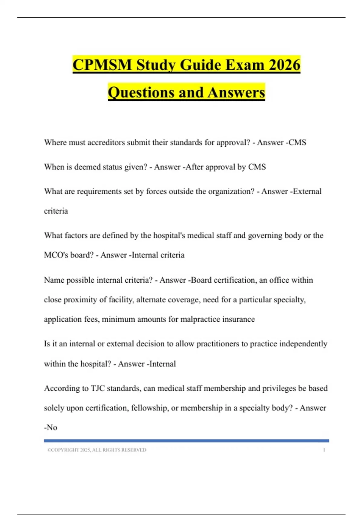 CPMSM Study Guide Exam 2026 Questions and Answers