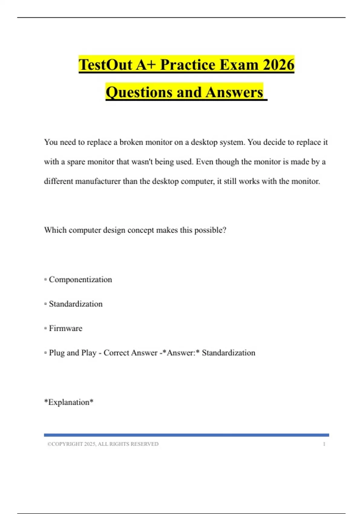 ▫ Plug and Play - Correct Answer -*Answer:* Standardization