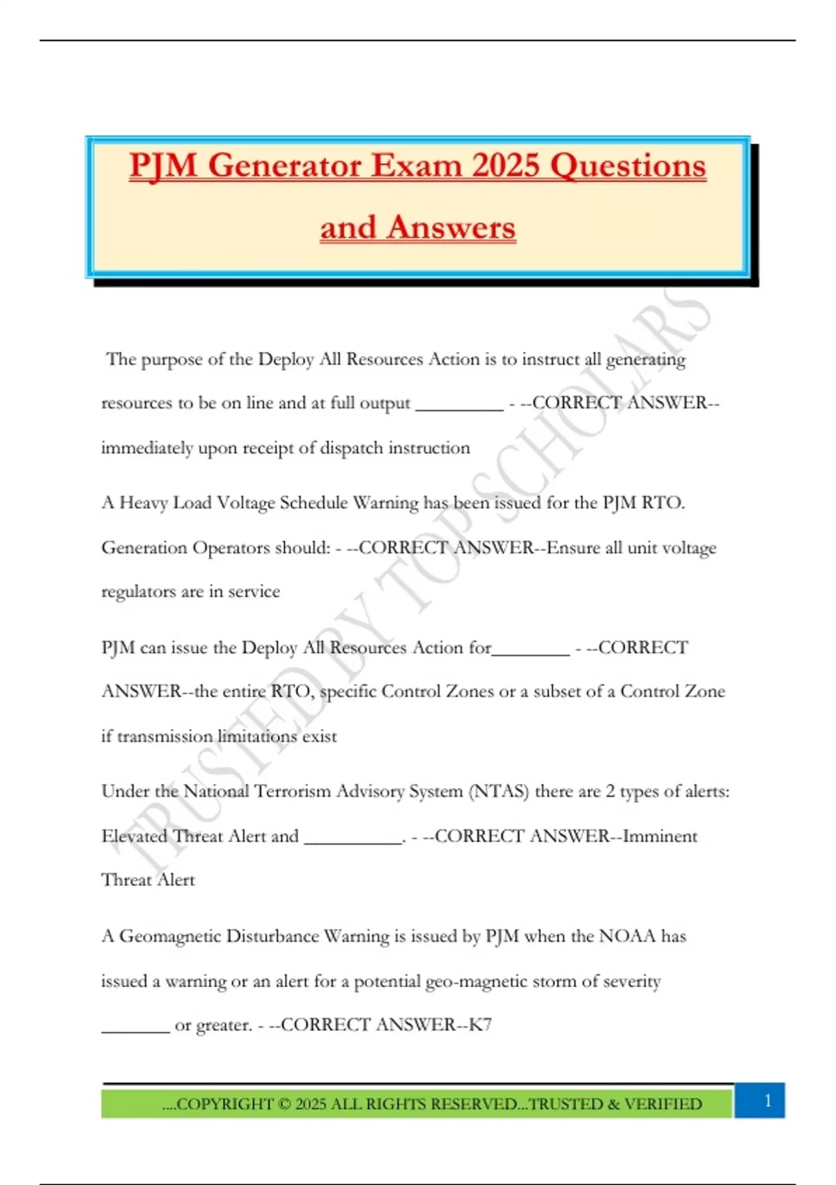 PJM Generator Exam 2025 Questions