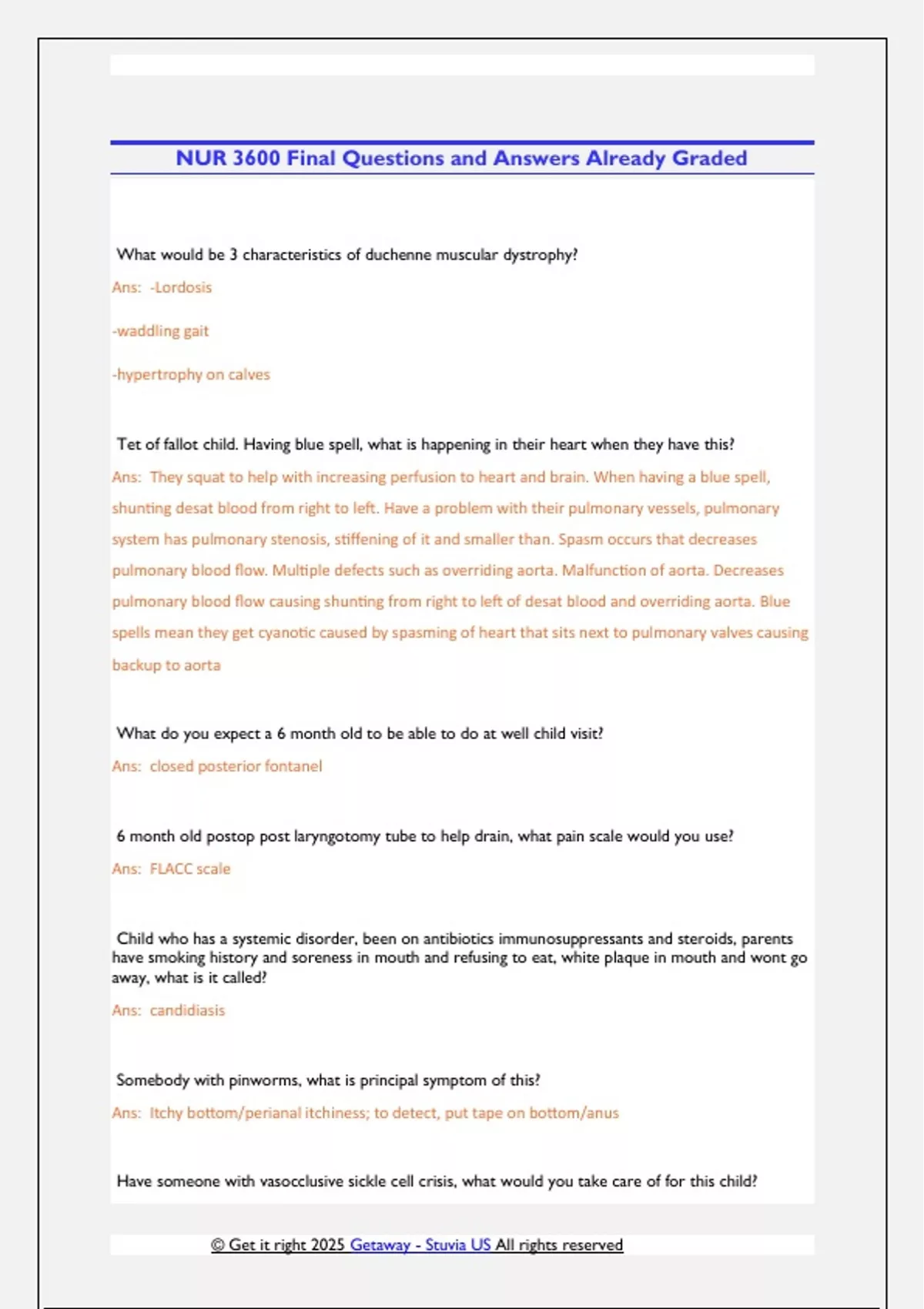 NUR 3600 Final Questions and Answers Already Graded NUR 3600 Final Questions and Answers Already Graded