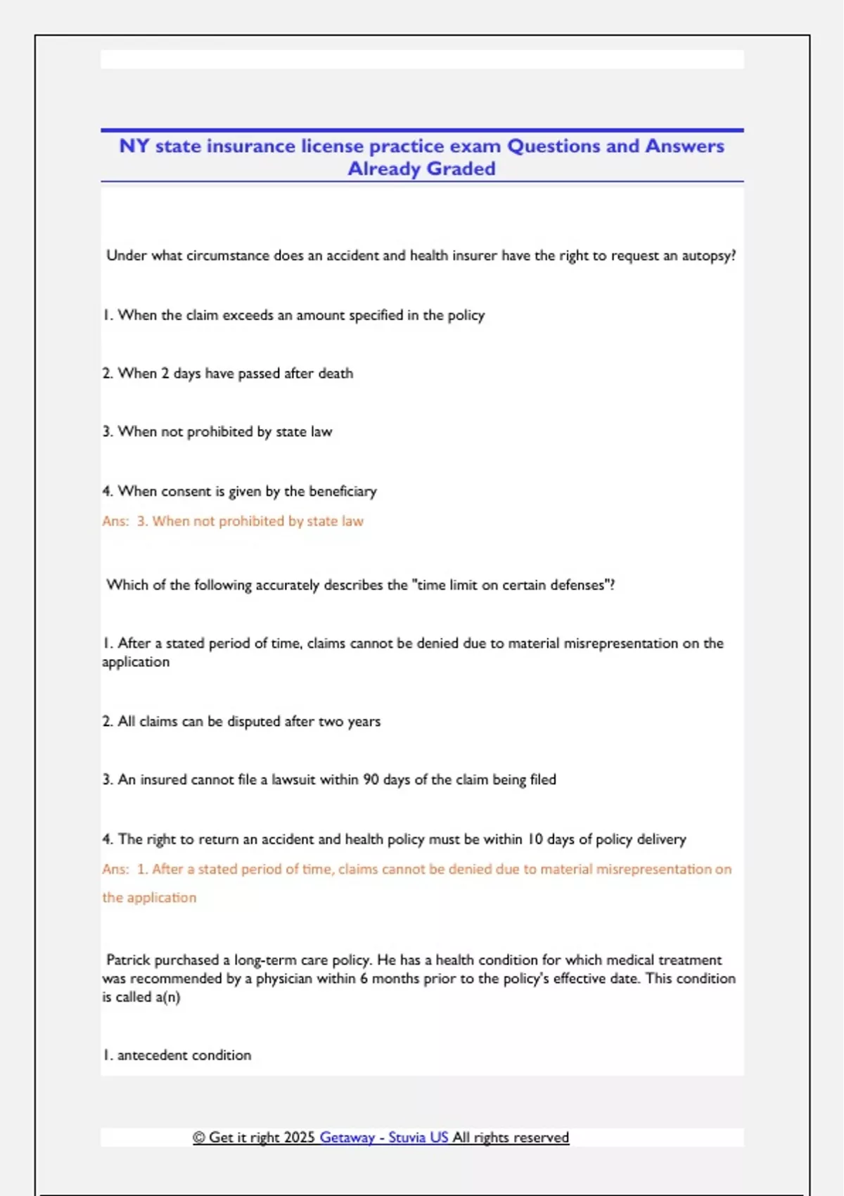 Ans: 1. After a stated period of time, claims cannot be denied due to material misrepresentation on