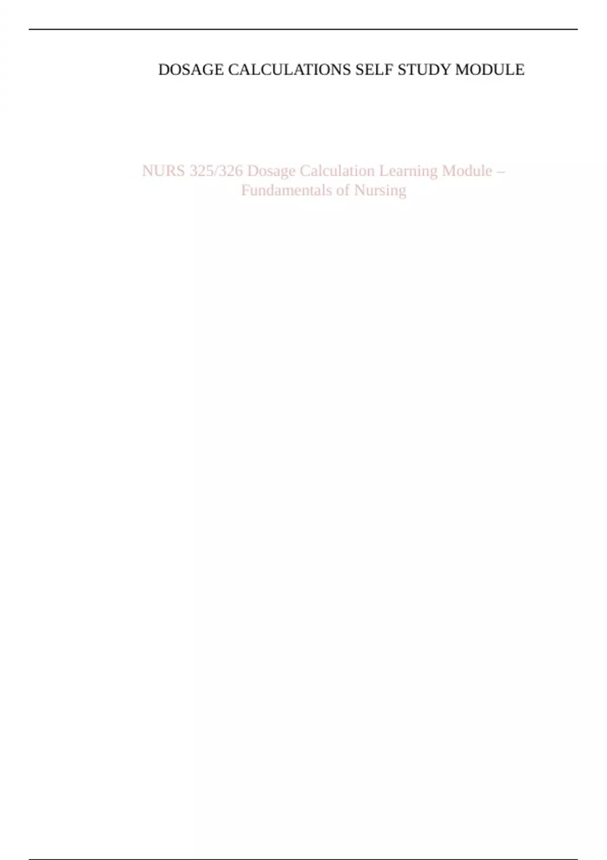 NURS 325/326 Dosage Calculation Learning Module –