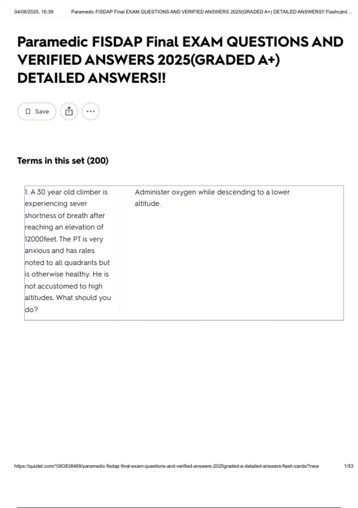 ,04/08/2025, 16:39 Paramedic FISDAP Final EXAM QUESTIONS AND VERIFIED ANSWERS 2025(GRADED A+) DETAILED ANSWERS!! Flashcard…