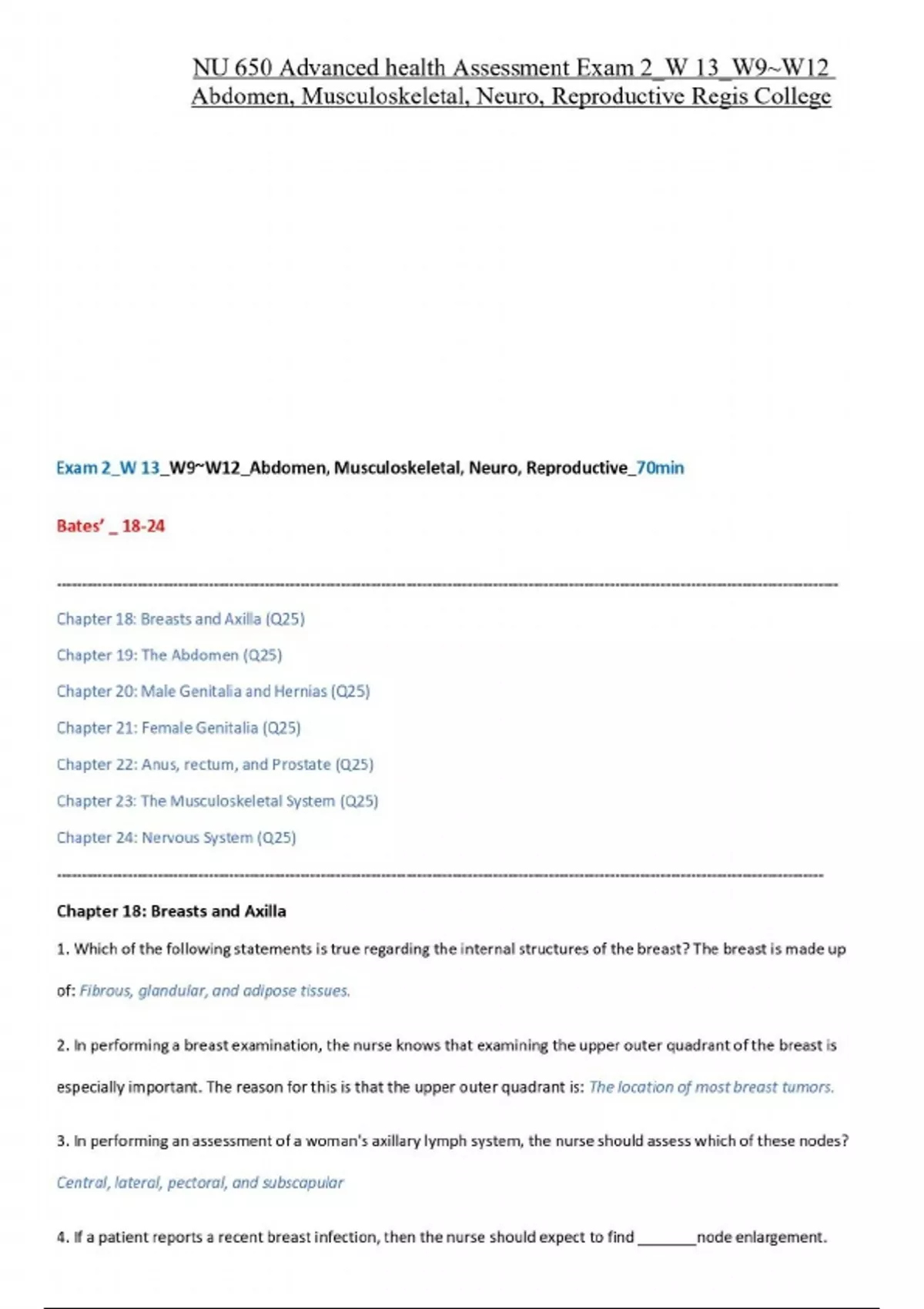 NU 650 Advanced health Assessment Exam 2_W 13_W9~W12 Abdomen, Musculoskeletal, Neuro, Reproductive Regis College